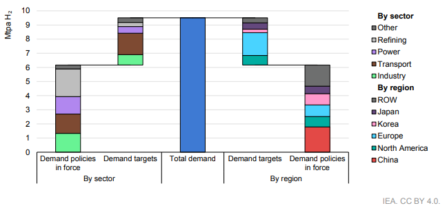 一方で、鉄鋼、輸送、発電、建物など「脱炭素のための新しい用途」の水素需要はまだごく小さく、統計上は誤差に近い水準です。世界全体で見ると、「量の主役は既存用途、新用途はまだ立ち上がり前」という構図が続いていると整理できます。