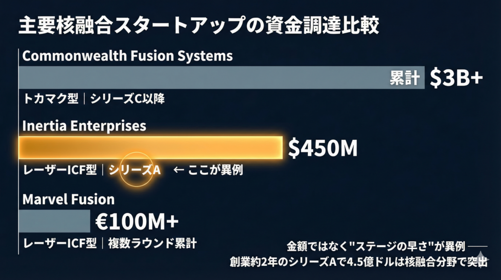 その中で、Inertiaの4.5億ドルは「シリーズAとしては破格」のサイズである。創業から2年足らずの段階で、パイロットプラントとサプライチェーンの構築まで見据えた資金を一気に確保できたことは、レーザーや真空装置、冷却系といった長納期コンポーネントの先行発注を可能にし、スケジュールの前倒しにつながりうる。