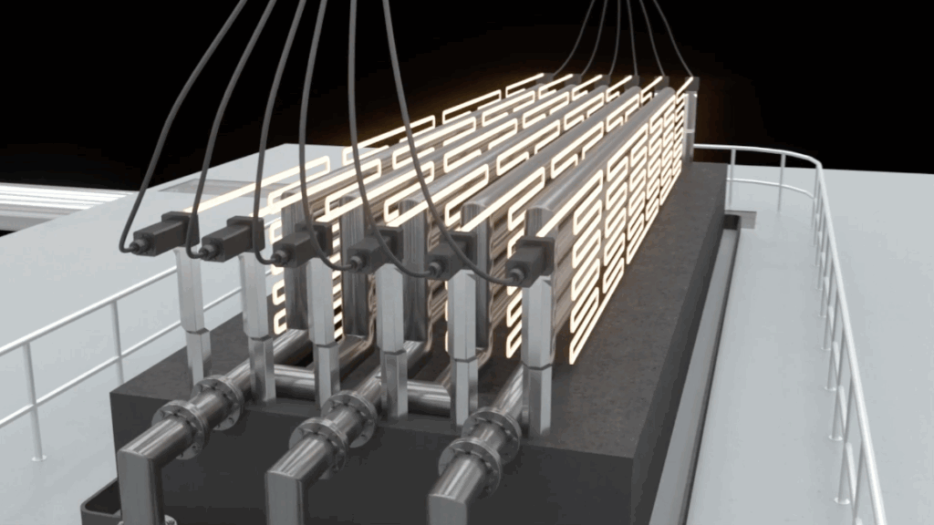 Fourth Powerは液体スズで熱を搬送し、黒鉛エミッタを白熱(最大2,400℃)させて高輝度の放射源を作り、TPVで電力に変換します。システム全体はアルゴン雰囲気で封入して寿命・安全性を確保するアプローチ。