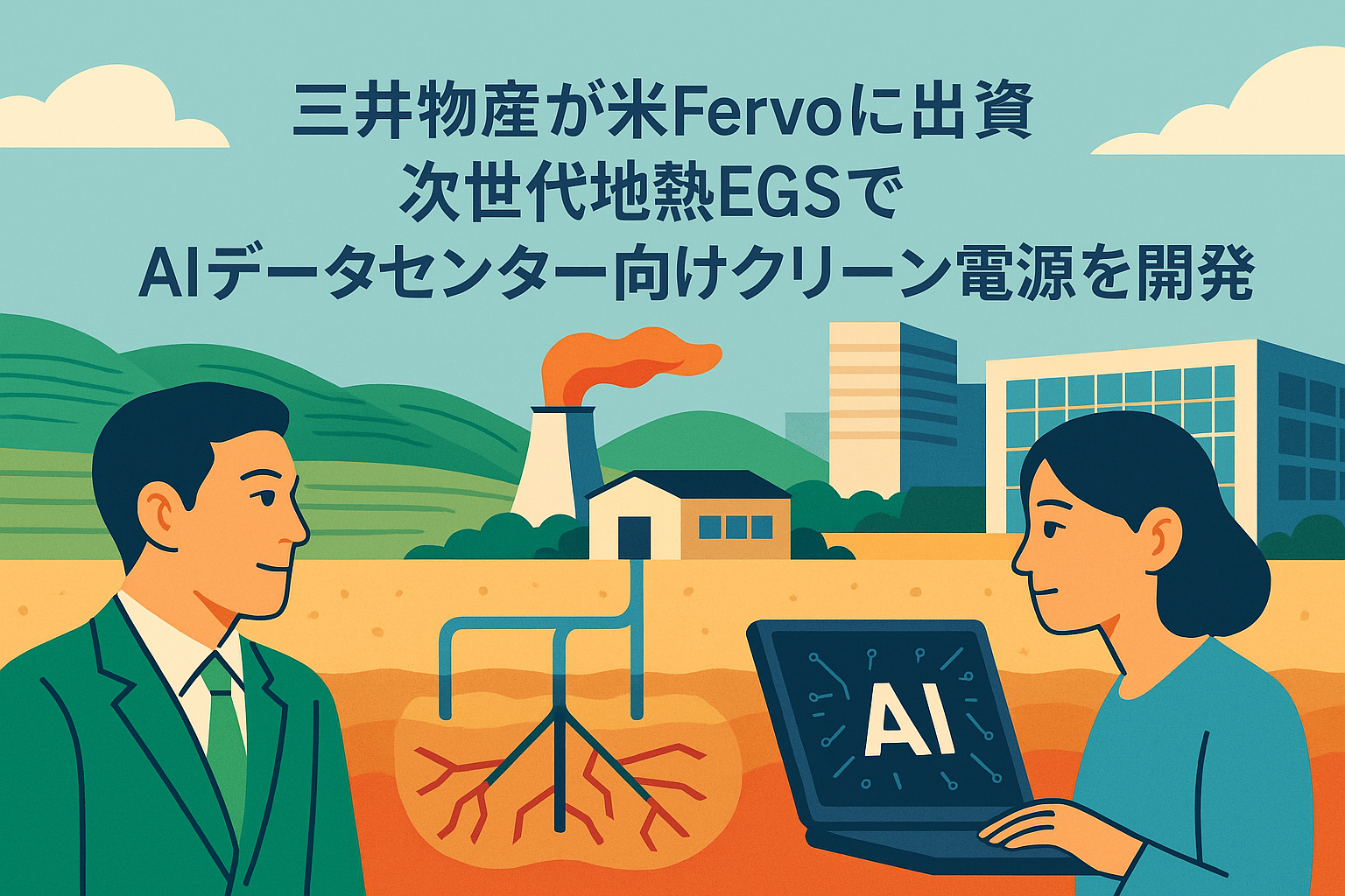 三井物産は、米ファーボ・エナジー(Fervo Energy)への出資を通じて、次世代型地熱発電とデータセンターを一体開発する構想を進めています。AIの普及で世界的に電力需要が増えるなか、安定したクリーン電源を日本企業としてどう確保するかが焦点になります。