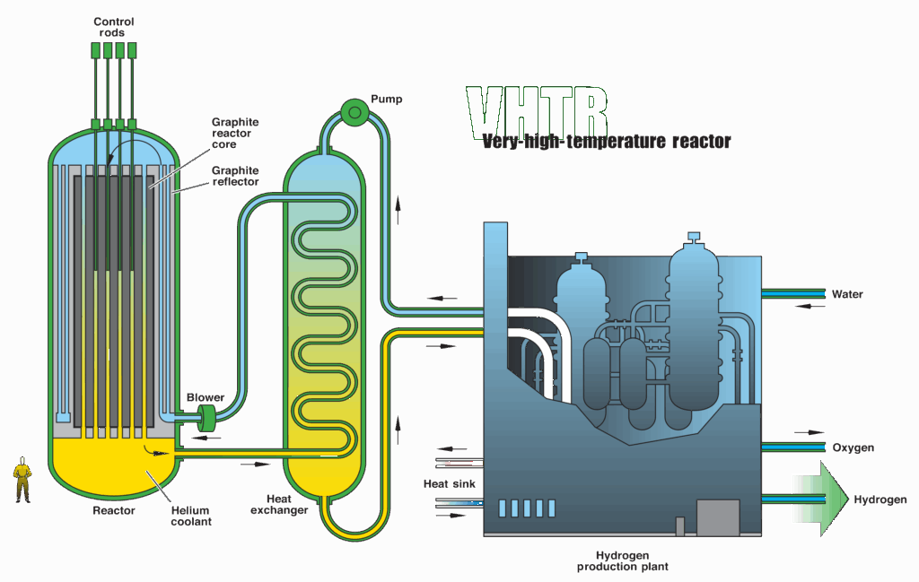 用途フィット:化学・精錬などの高温プロセス熱+発電(コジェネ)に最適。水素は高温水蒸気電解(HTSE/SOECで電力量を圧縮)や熱化学サイクル(S-I等、~800–950℃)との熱統合が本筋で、“水の直接熱分解”は温度要件が高すぎて非現実的です。