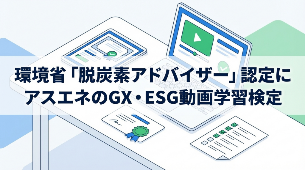 環境省「脱炭素アドバイザー」認定に アスエネのGX・ESG動画学習検定